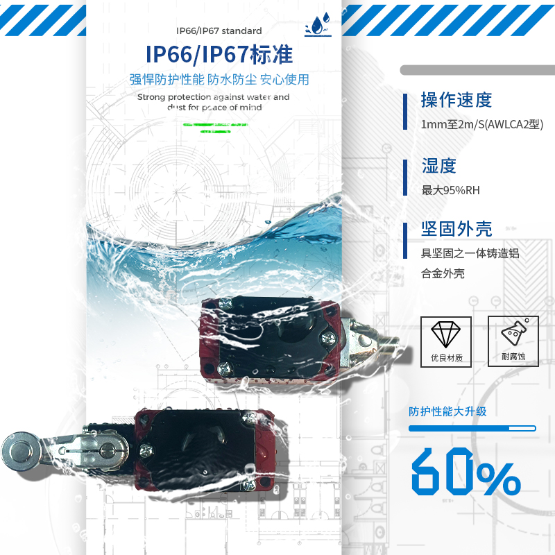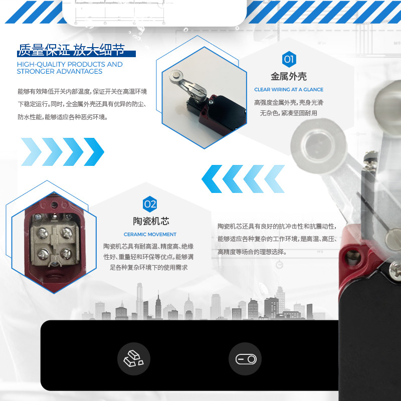 凱基特耐高溫行程開關具有以下優點:超位報警,安全可靠,接觸檢測,磨損小。耐高溫最高可達550℃。鋁合金外殼 高機械強度,防護等級IP67 耐油、防水和防壓結構。